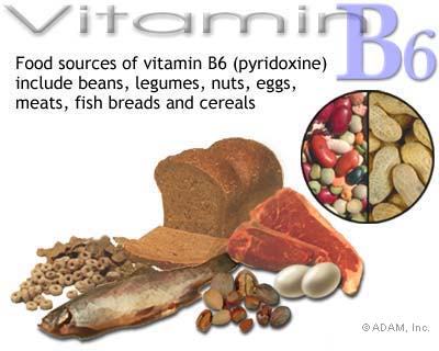 Troviamo grandi quantità di vitamina B6 soprattutto nelle carni magre e bianche come per esempio pollo e coniglio, ma è presente in grandi quantità anche nel pesce, nelle uova, nel pane e nei cereali integrali. Grandi dosi di vitamina B6 si trovano anche nelle banane, le quali sono anche la più grande fonte di potassio disponibile.